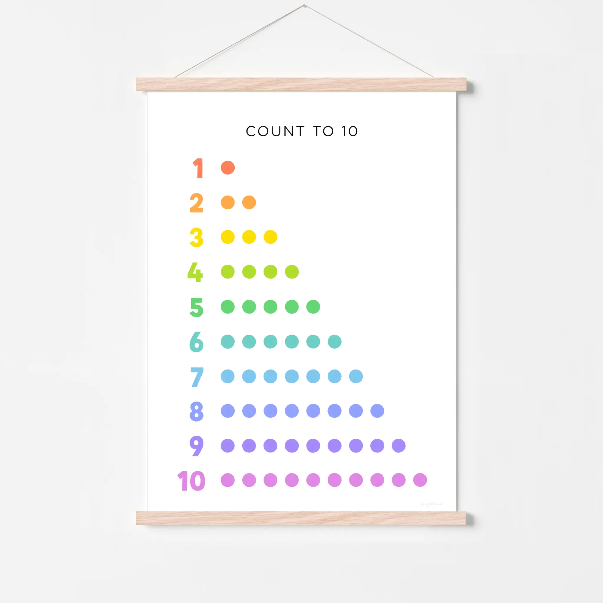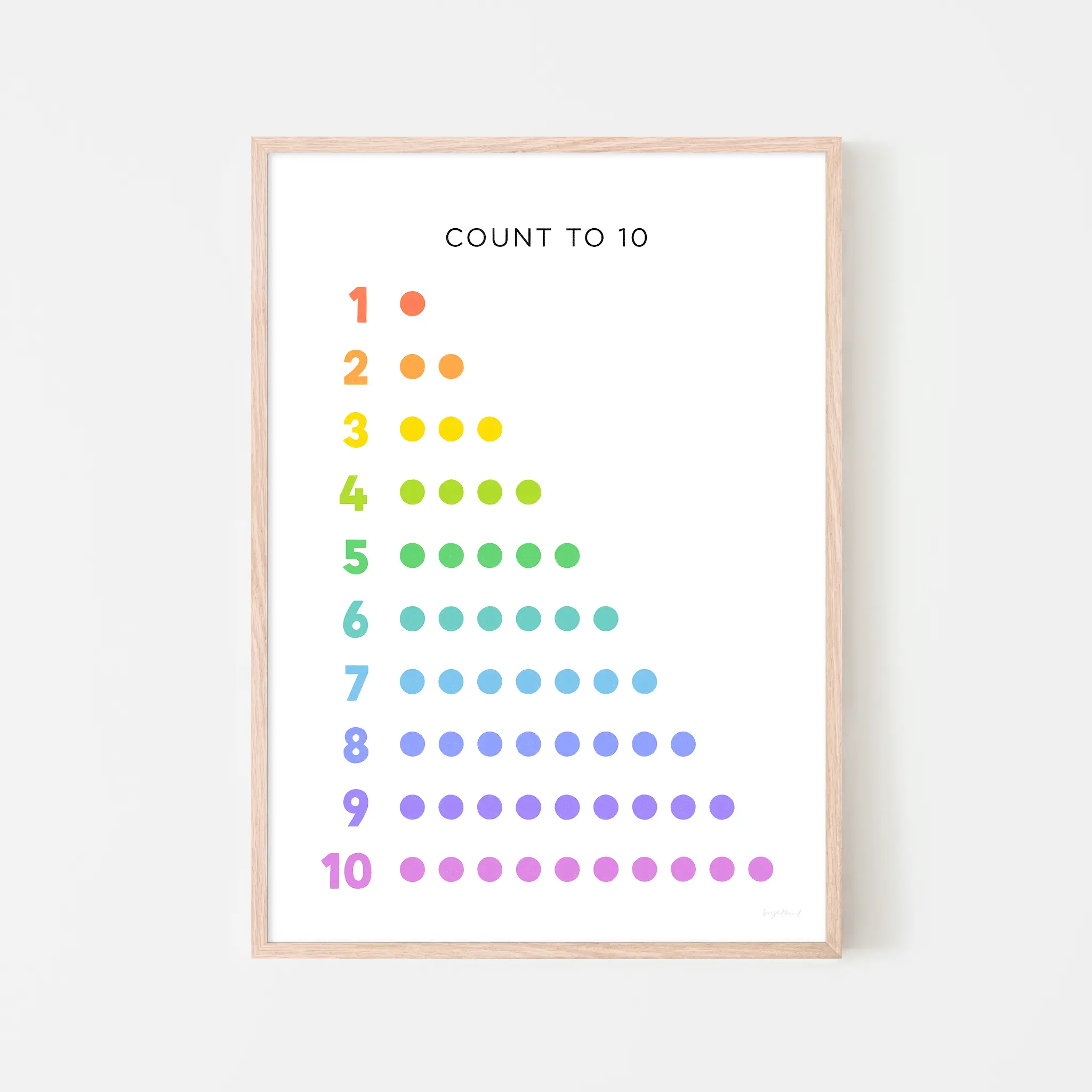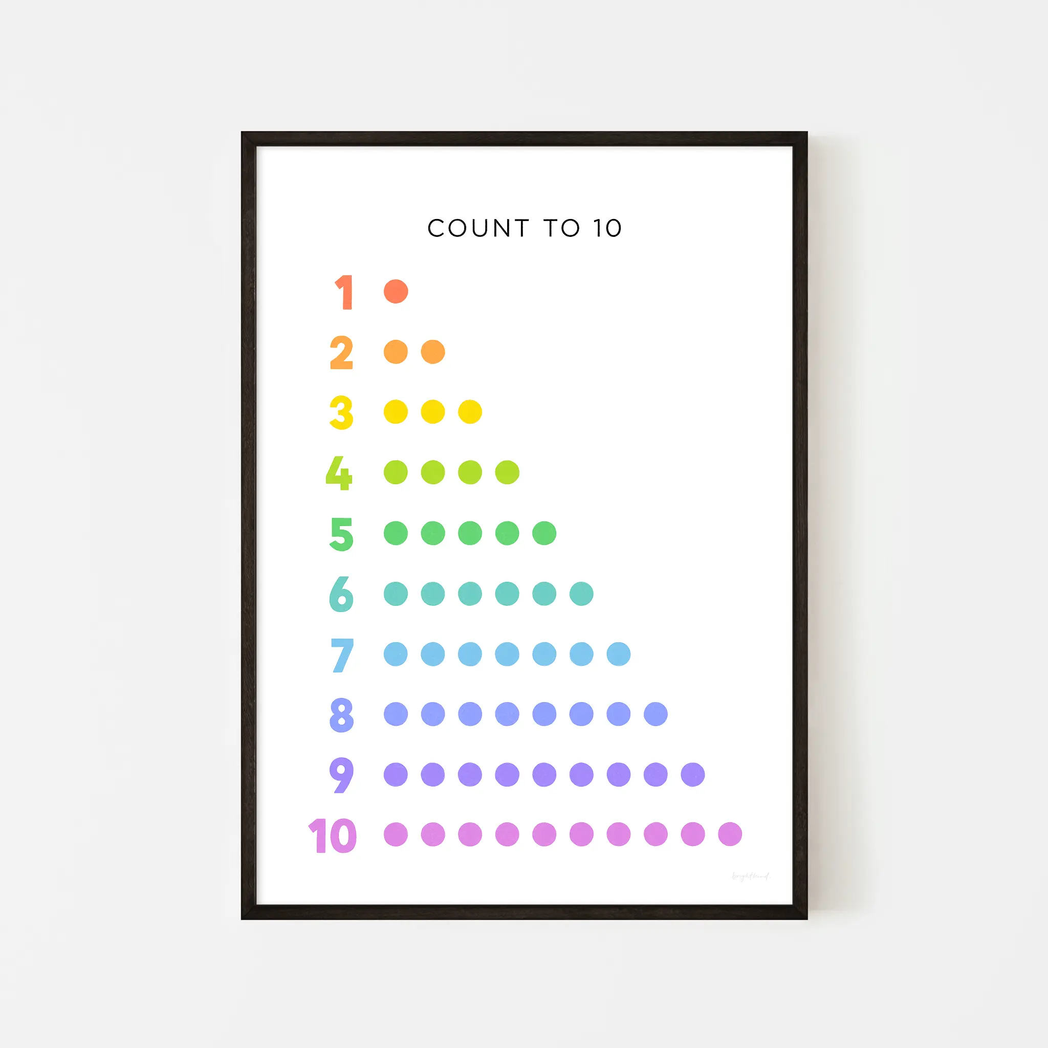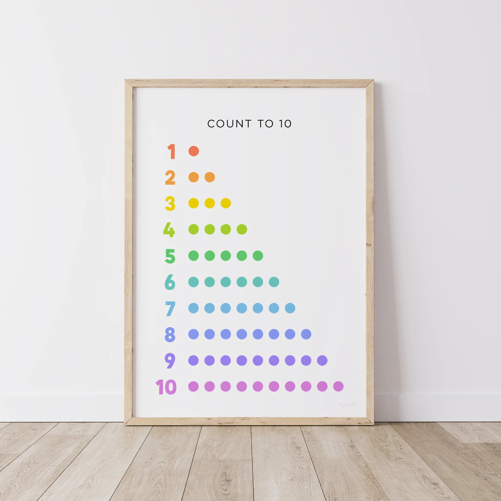 - The framed images shown for Count to 10 Educational Poster – Rainbow are for reference—please check the frame colour swatch for an accurate representation.