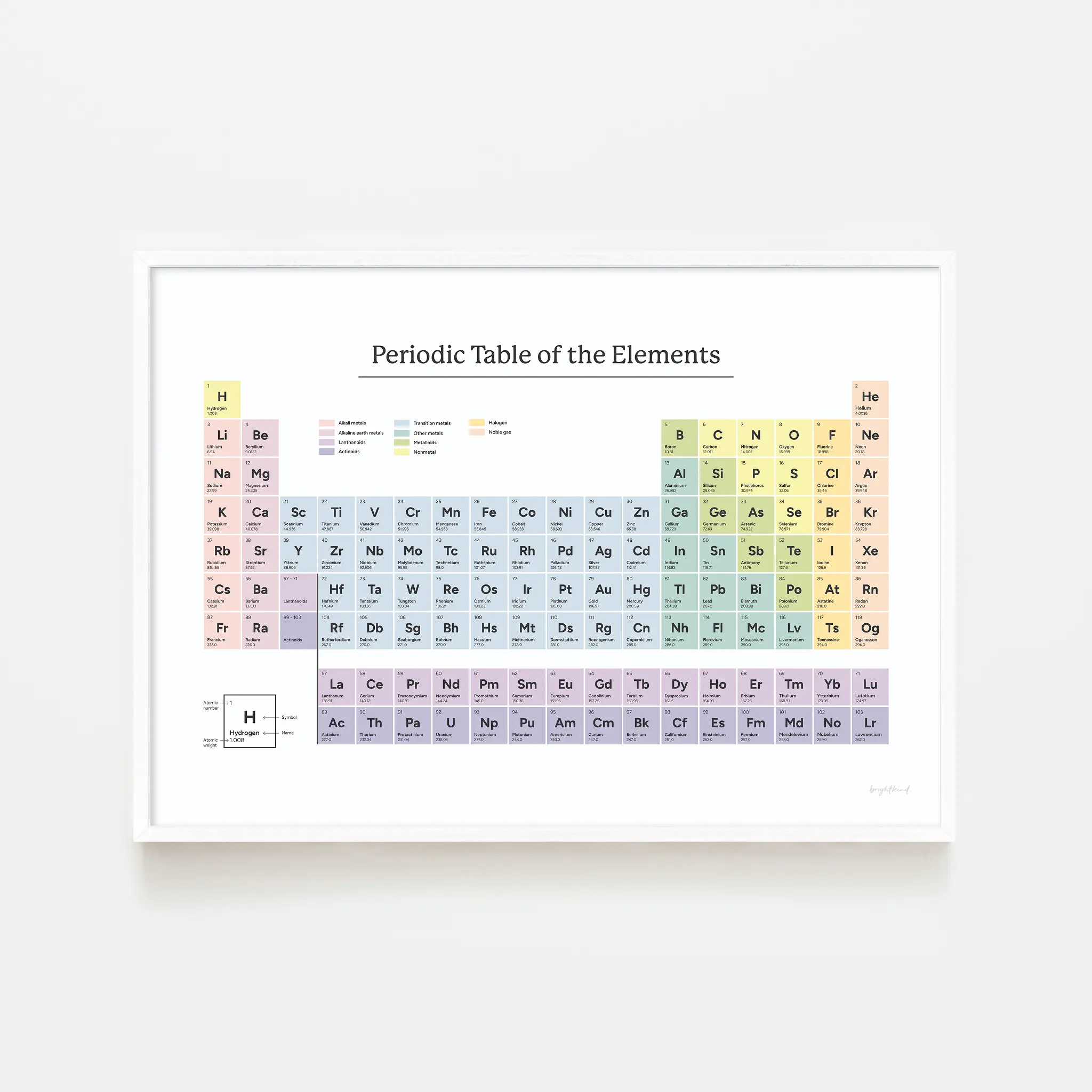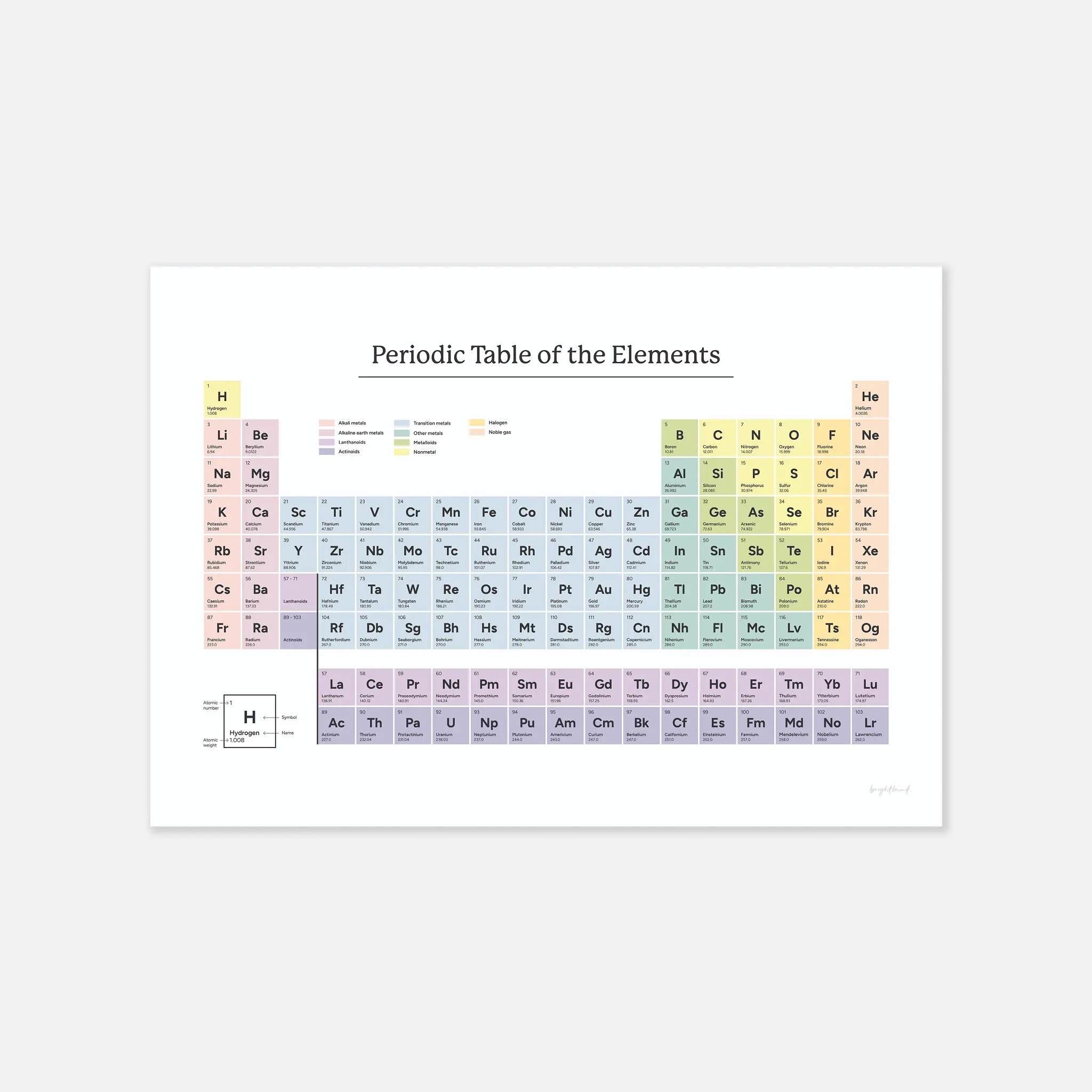 A must-have for science lovers and curious minds, this modern periodic table poster combines clarity, accuracy, and soft pastel hues for an elegant and educational display. Perfect for students, teachers, or anyone with a love for chemistry, it serves as both a reference and a stylish addition to any study space, classroom, or office.