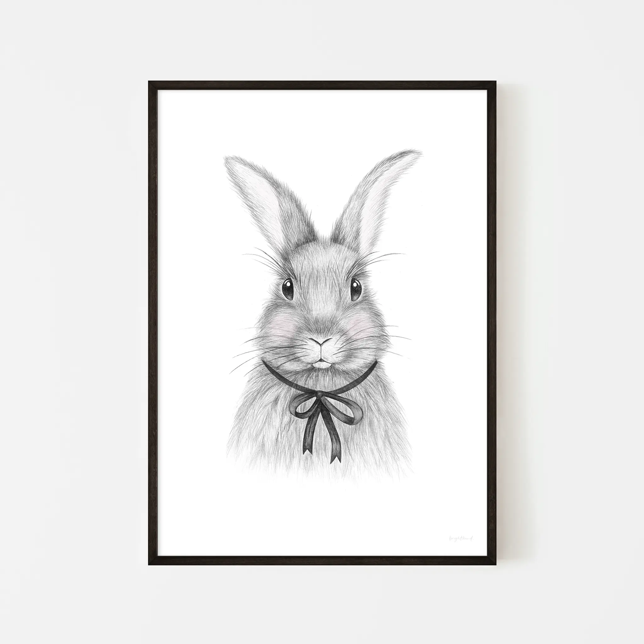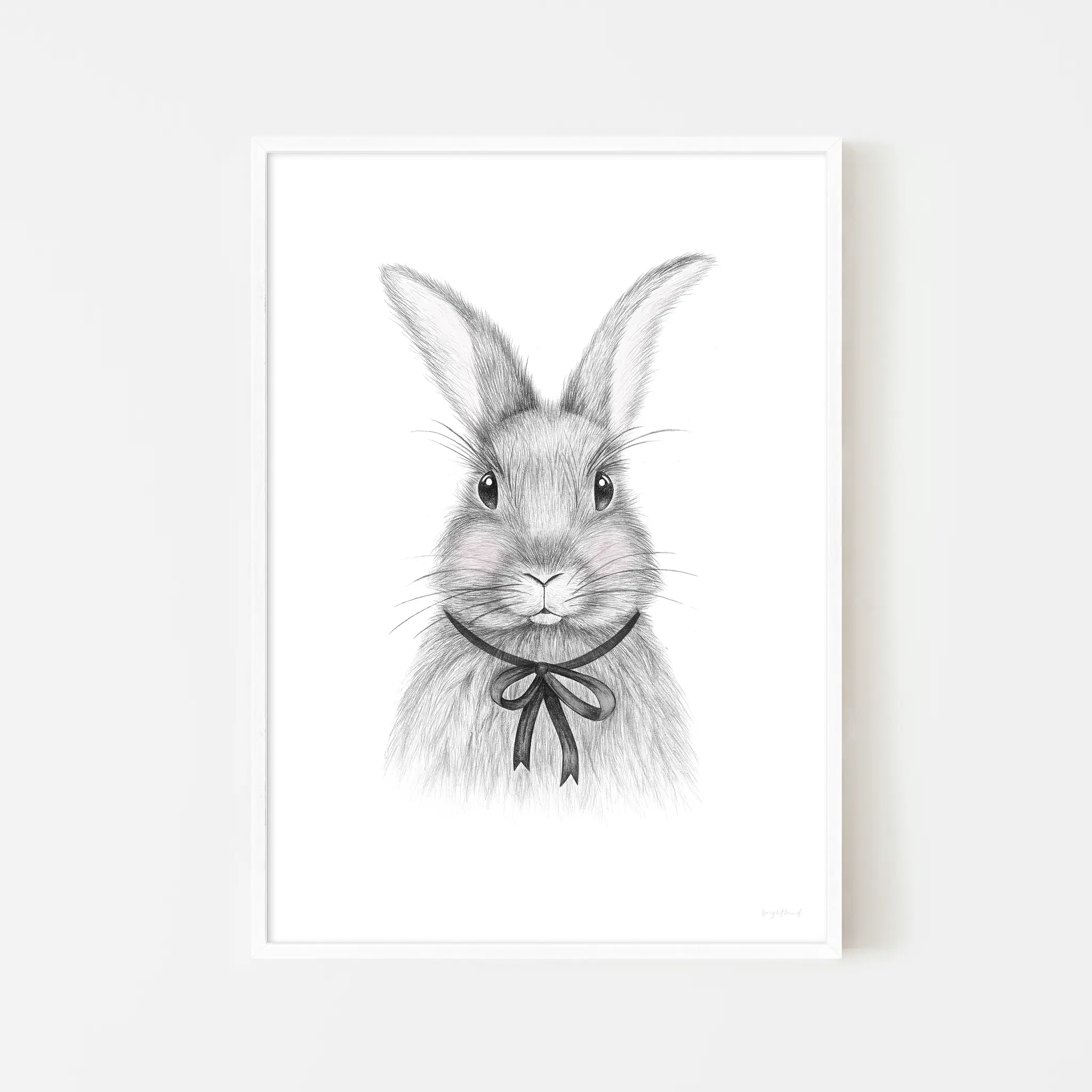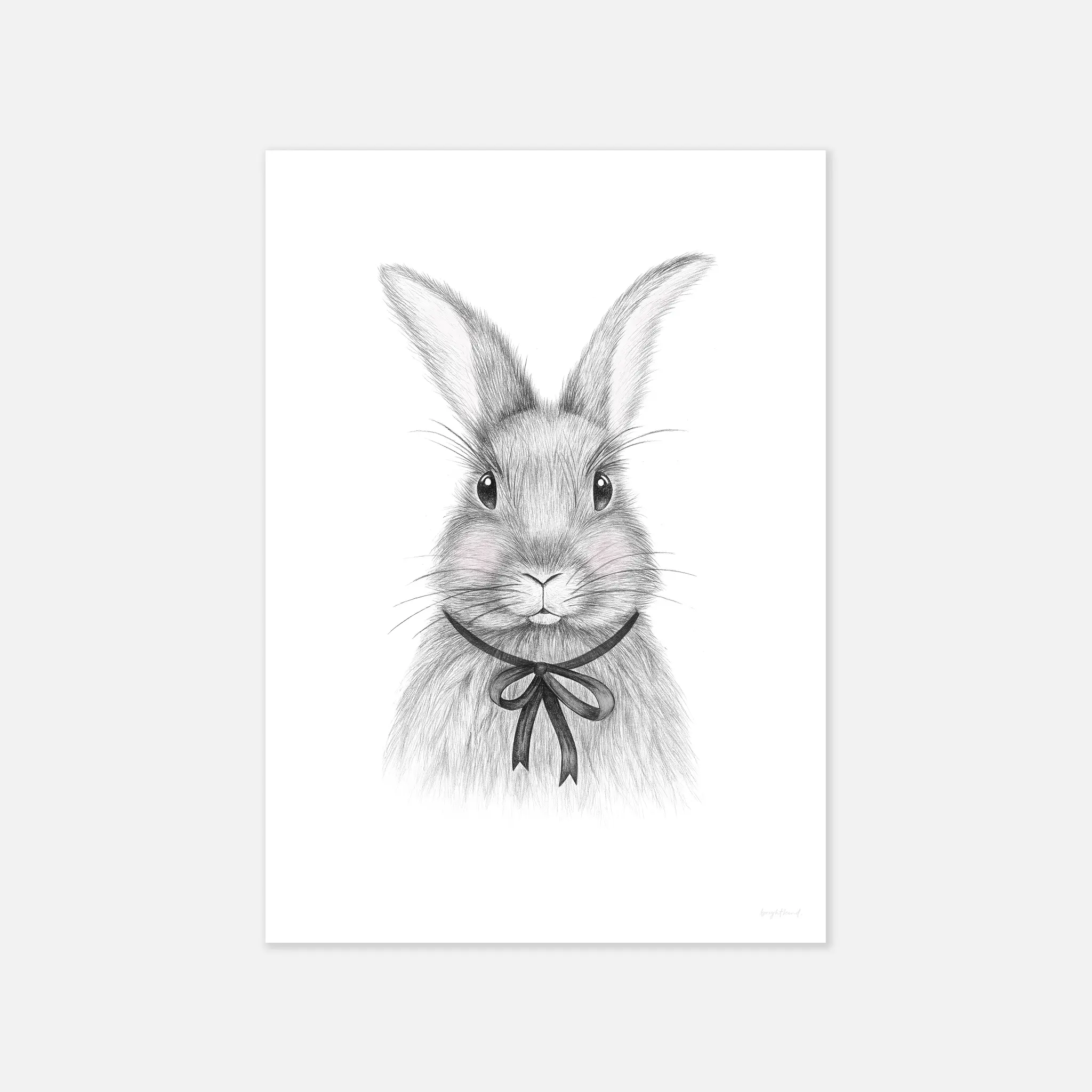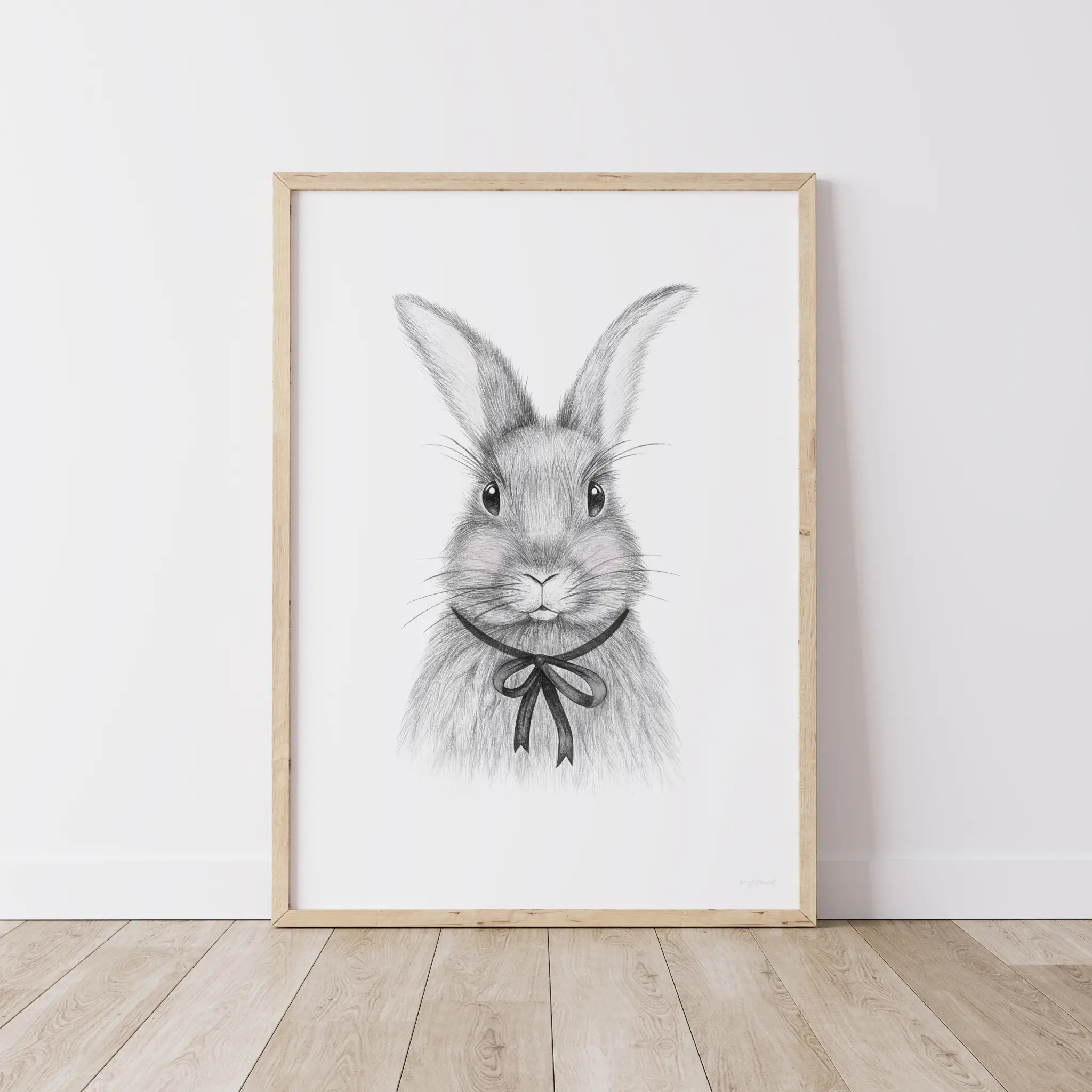 Meet Bowie, a charming rabbit drawn in exquisite graphite detail. With its curious eyes, soft fur and a neatly tied ribbon, Bowie is a character waiting to be part of a child’s world. Whether joining in tea parties, bedtime stories, or daily adventures, Bowie sparks imagination and becomes a lovable companion in play. This print is a delightful addition to any nursery or woodland-themed space.