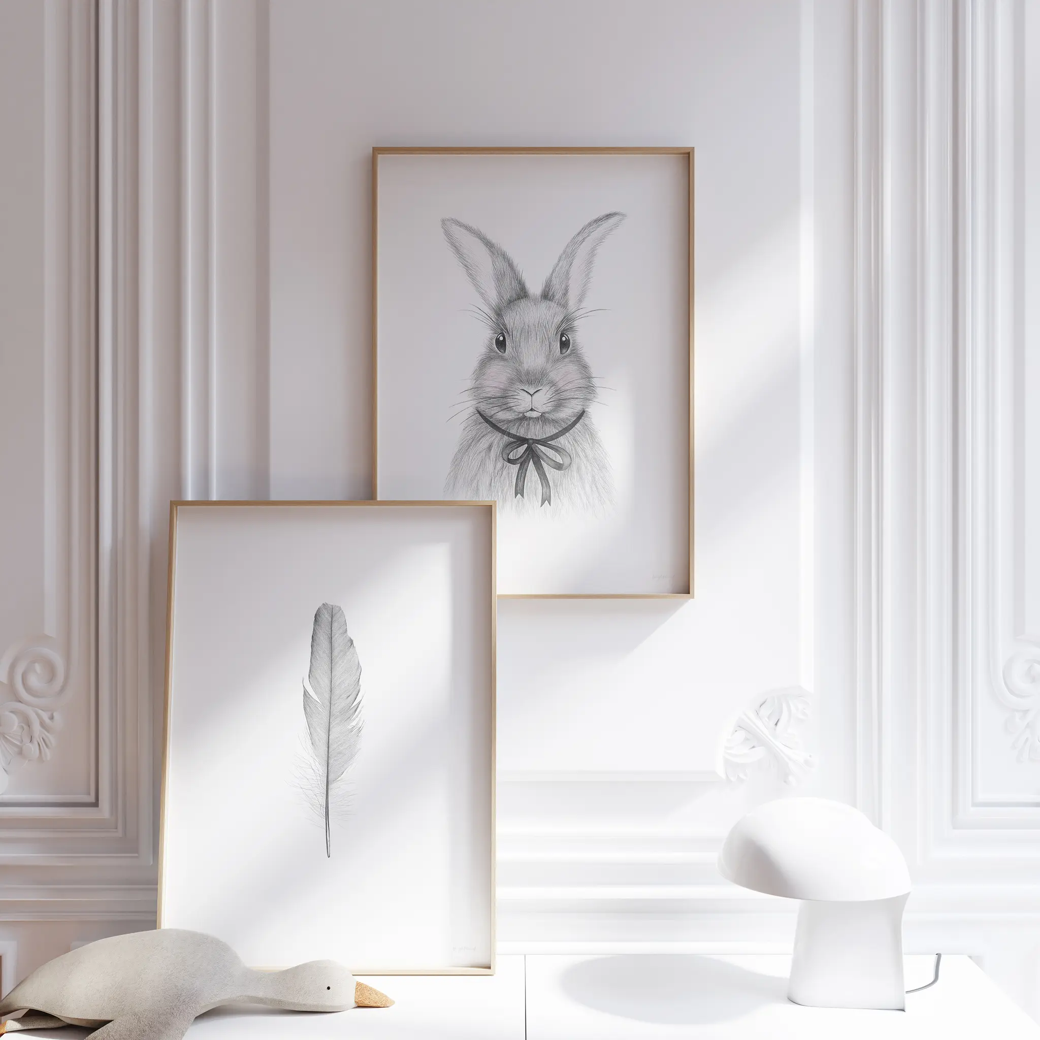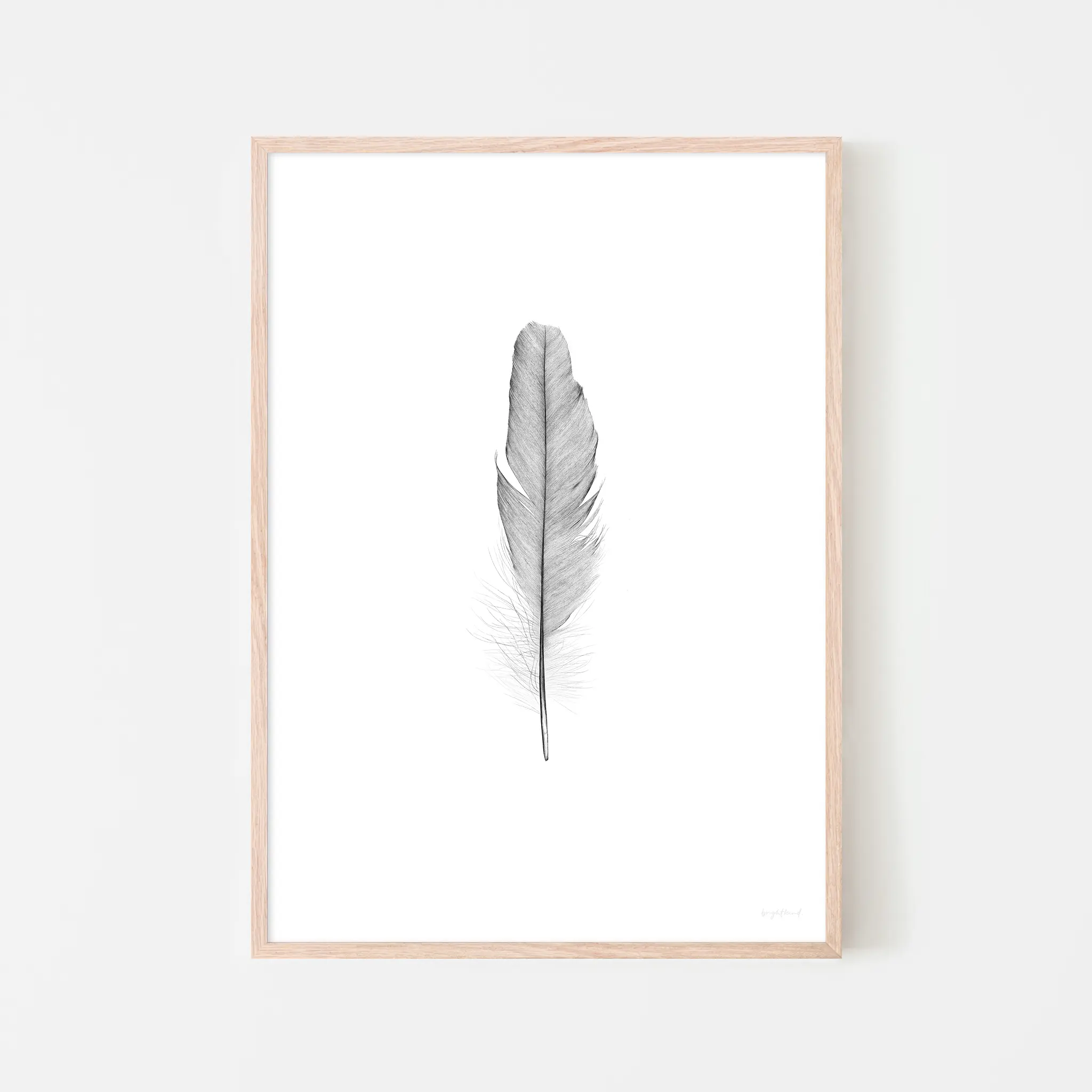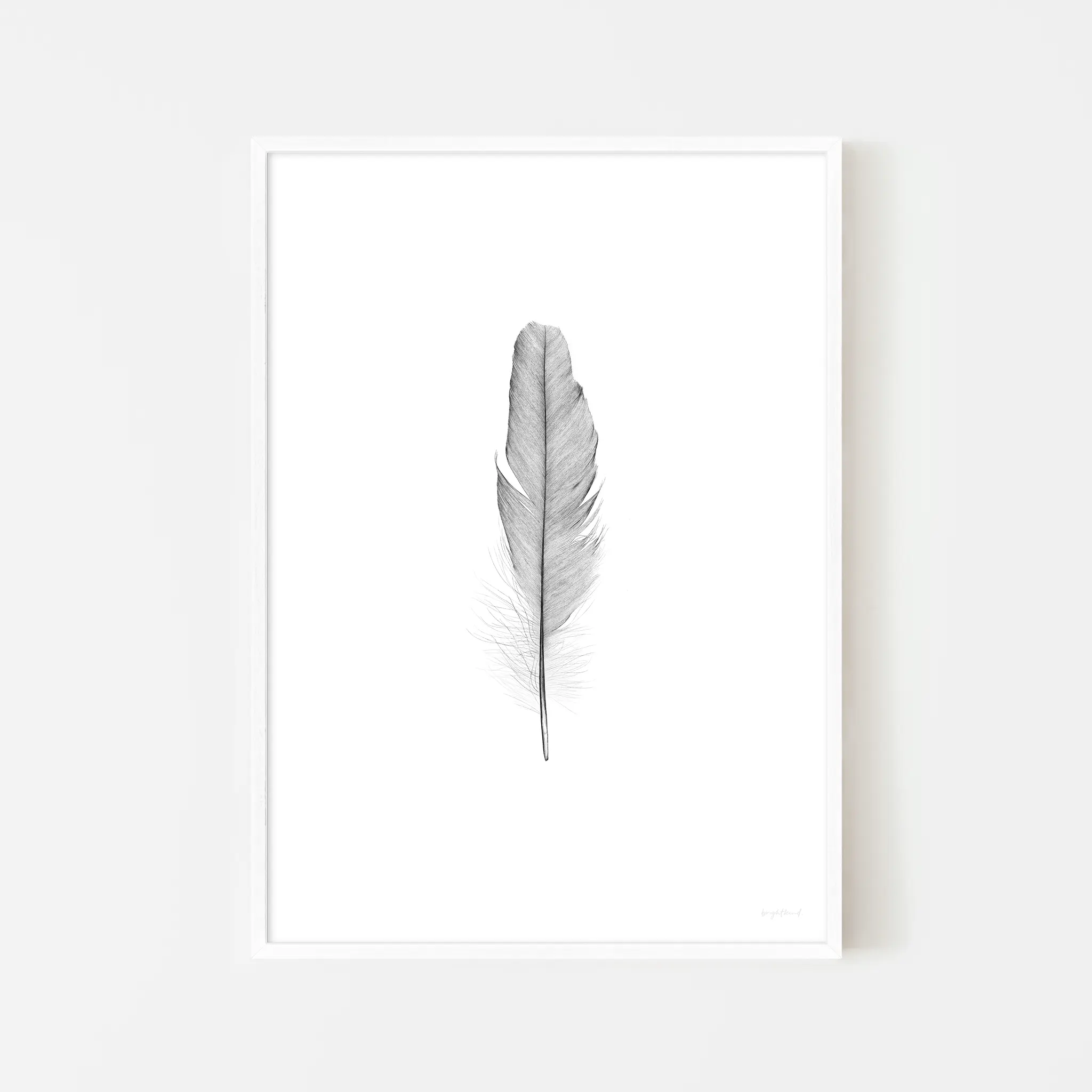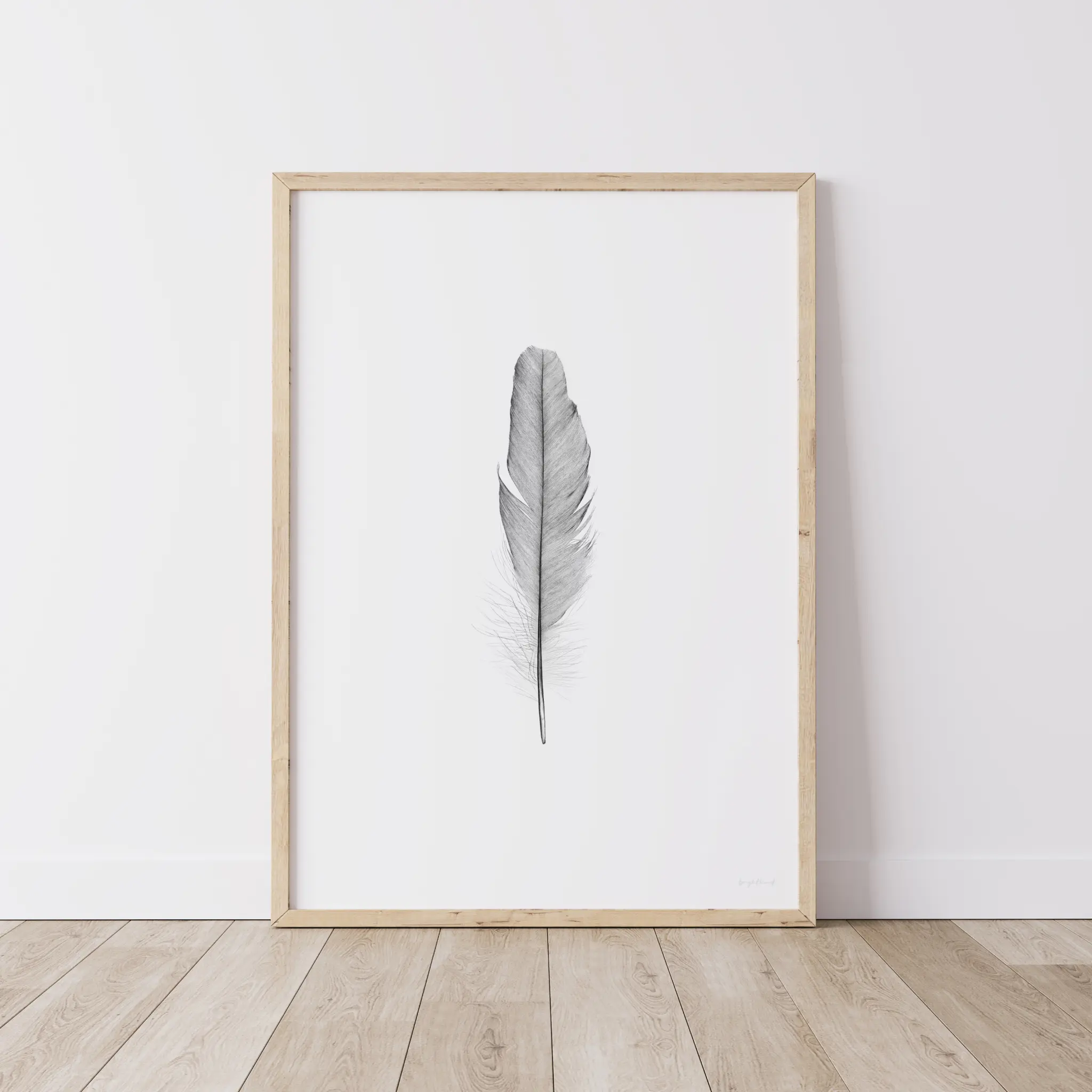 A study in lightness and grace, this print captures captures the quiet beauty of nature in its most delicate form. This intricately hand-drawn monochrome feather evokes a sense of peace, balance, and serenity. With its airy and minimalist aesthetic, this artwork is perfect for creating a tranquil atmosphere in any room.