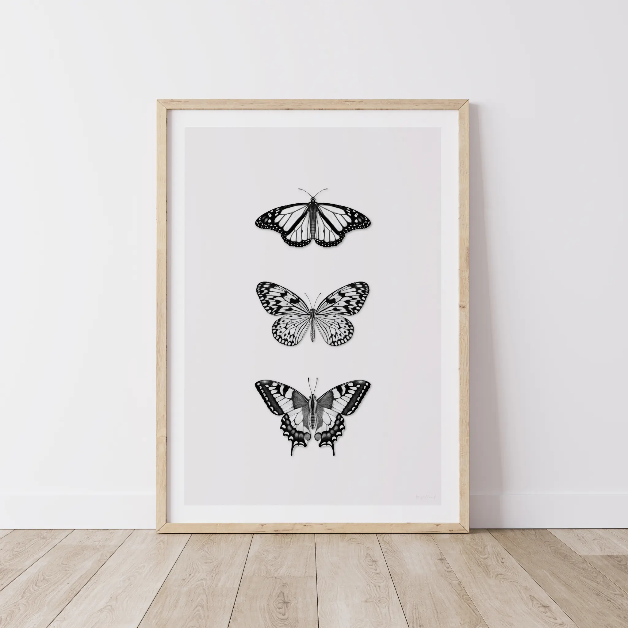 A delicate and refined composition, this graphite pencil drawing showcases three uniquely intricate butterflies, each with its own exquisite wing patterns. Set against a warm neutral tone, this artwork exudes elegance and tranquility. Whether you’re styling a nursery, office, or living space, this piece blends seamlessly with neutral decor, adding a touch of organic beauty to your walls.