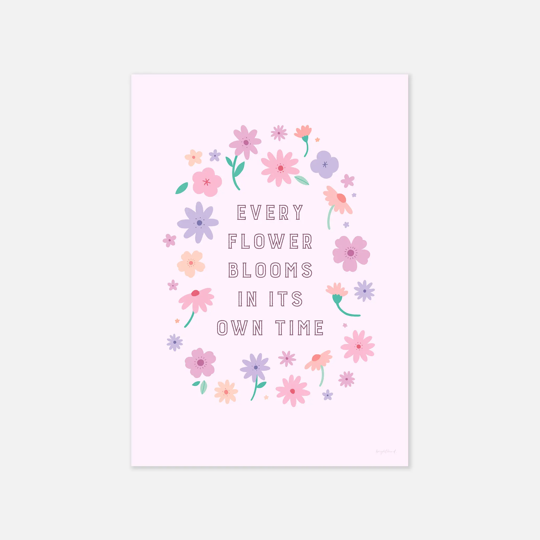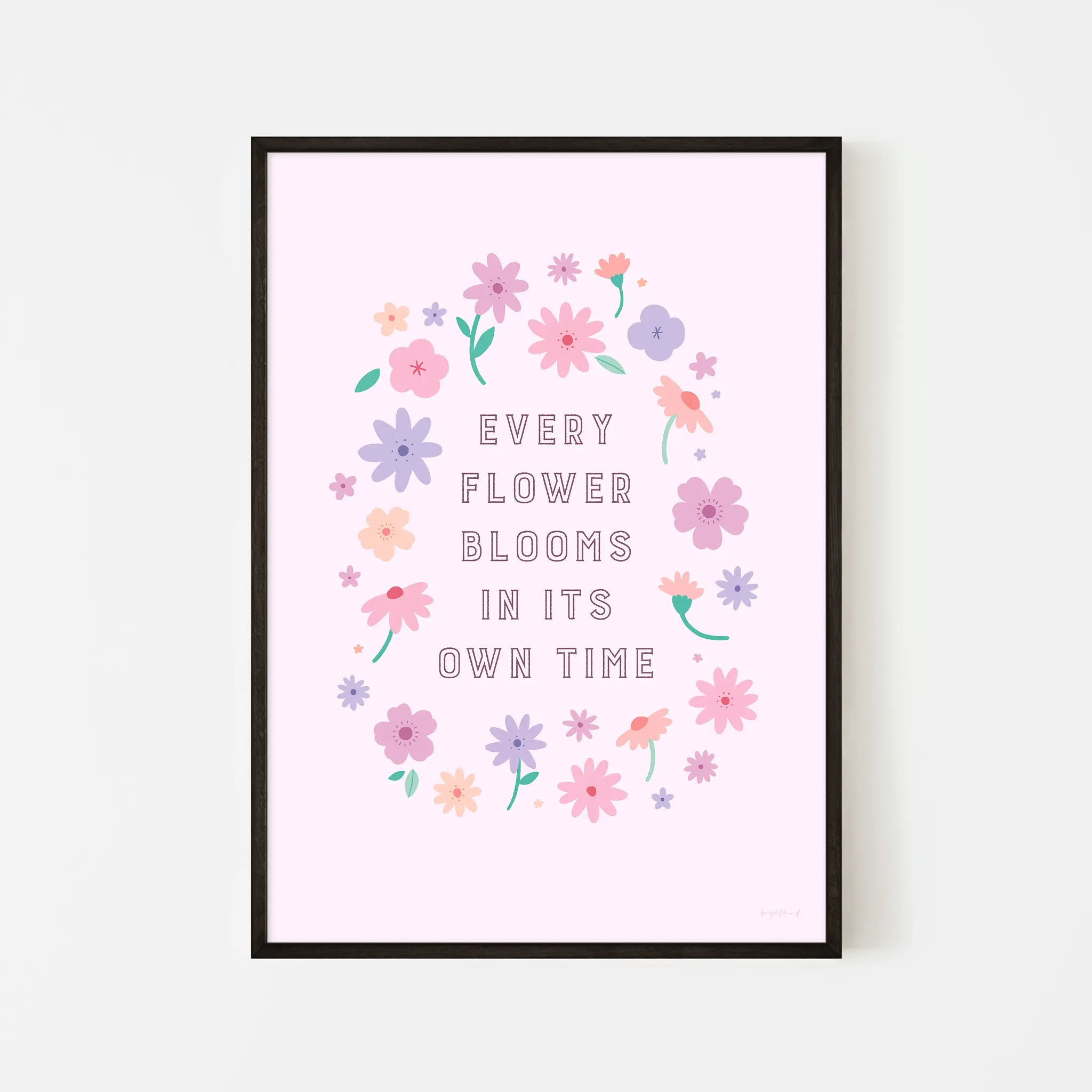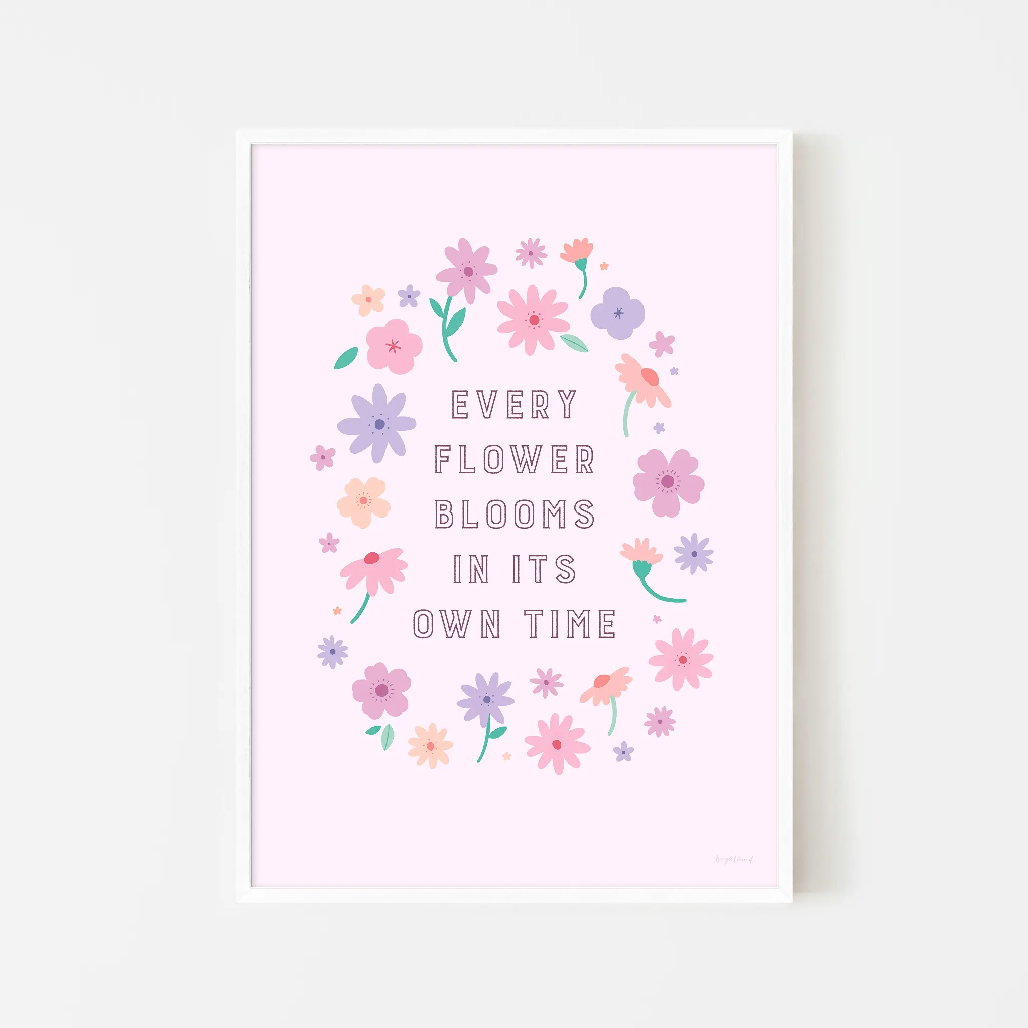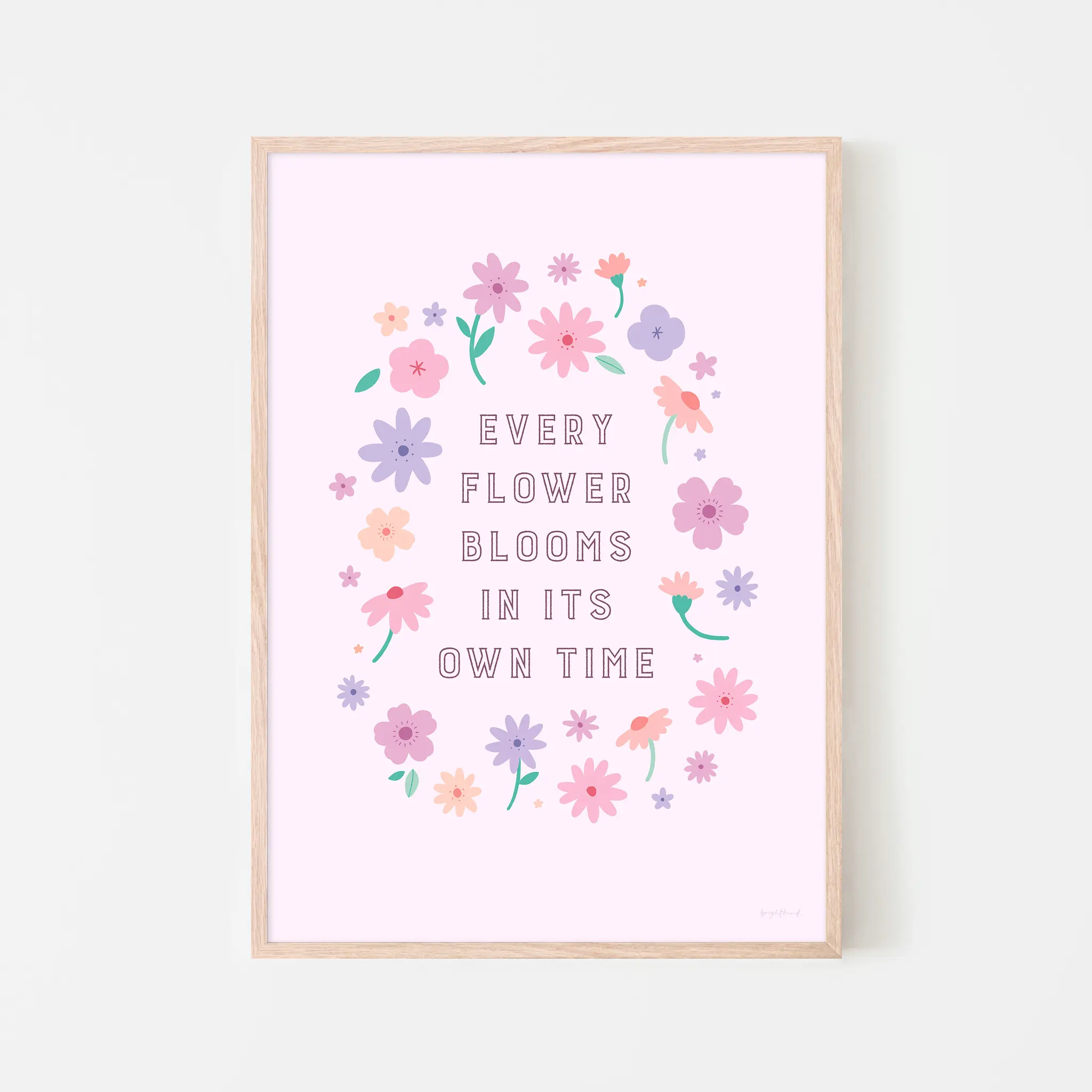 A gentle reminder that growth happens in its own perfect time, this floral print is a celebration of patience, self-love, and personal journeys. The delicate pastel flowers arranged in a soft wreath create a sense of calm and reassurance, making it a perfect piece for nurseries, bedrooms, or any space that needs a touch of encouragement and beauty.