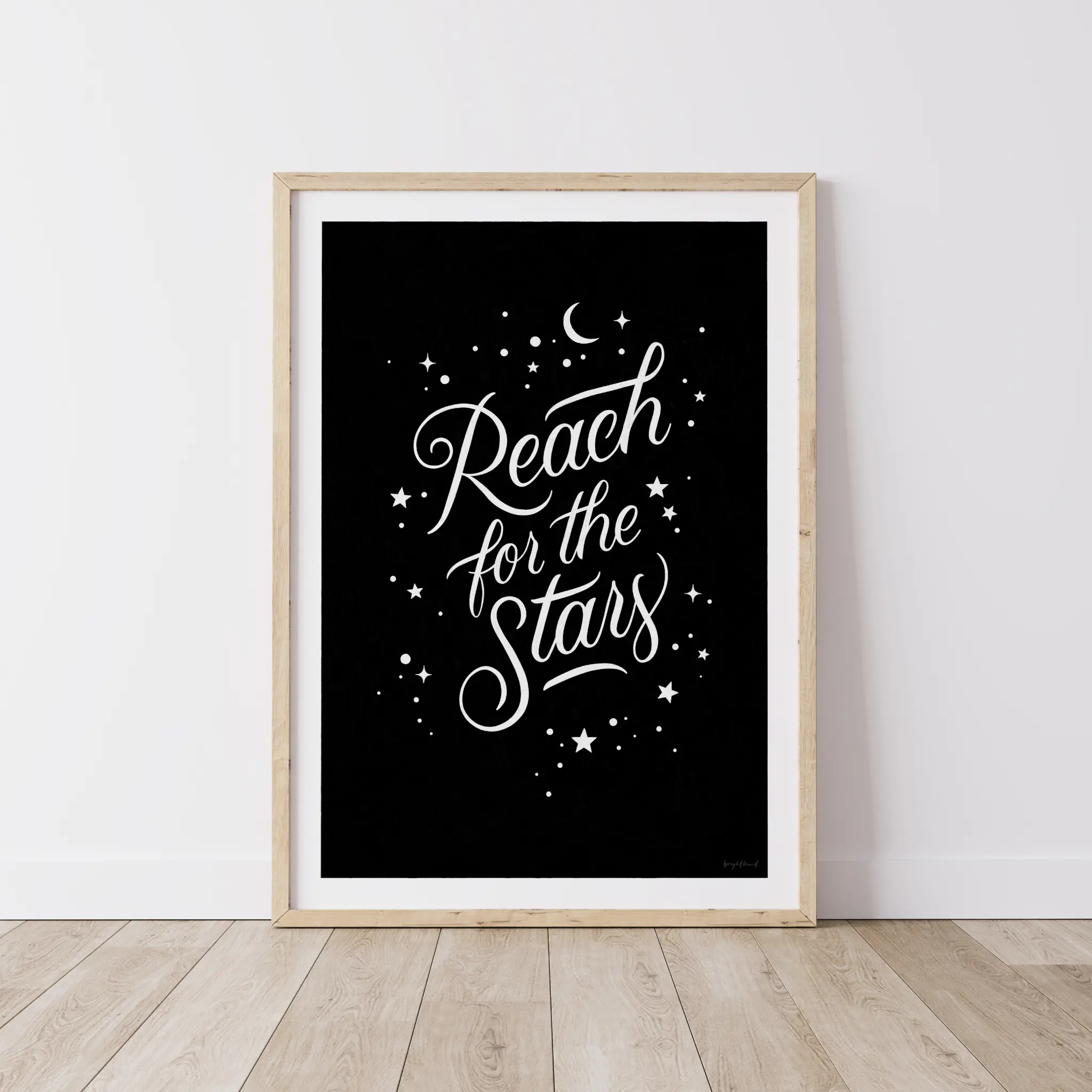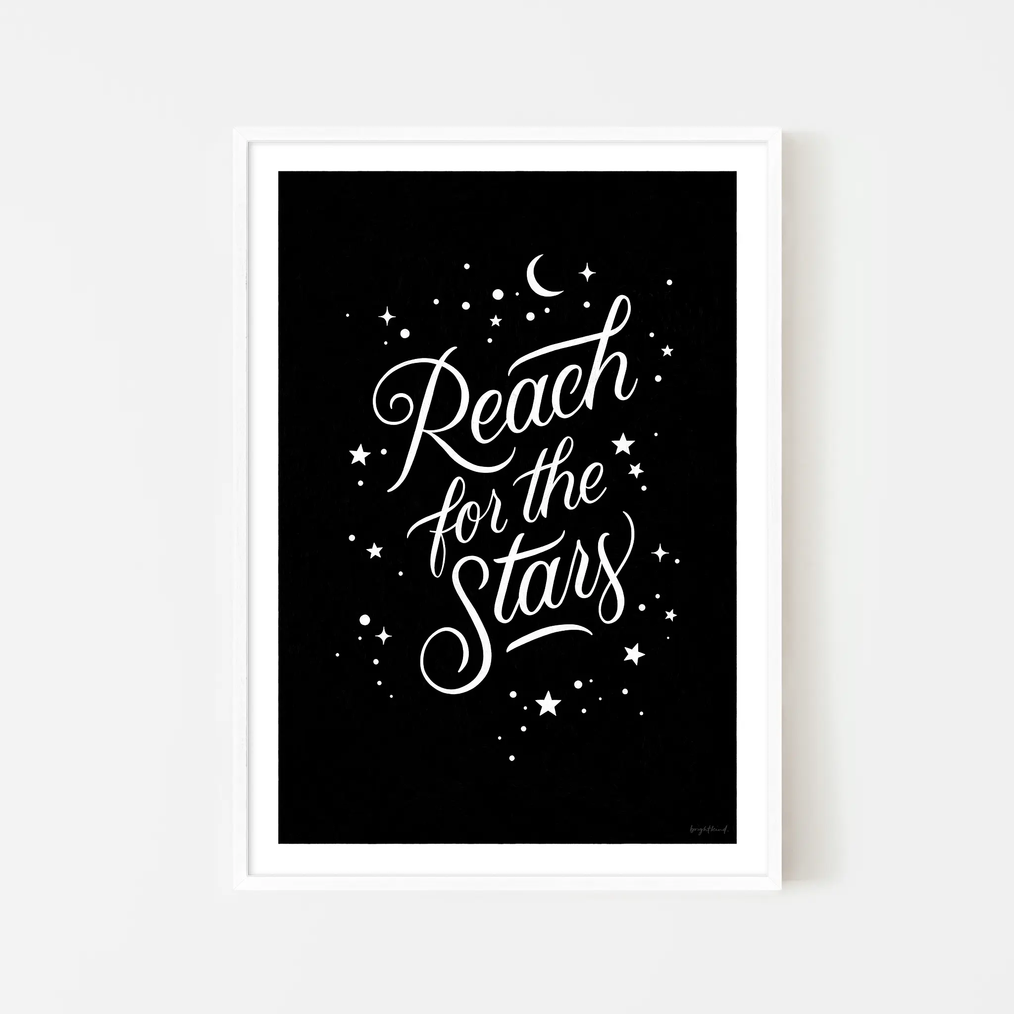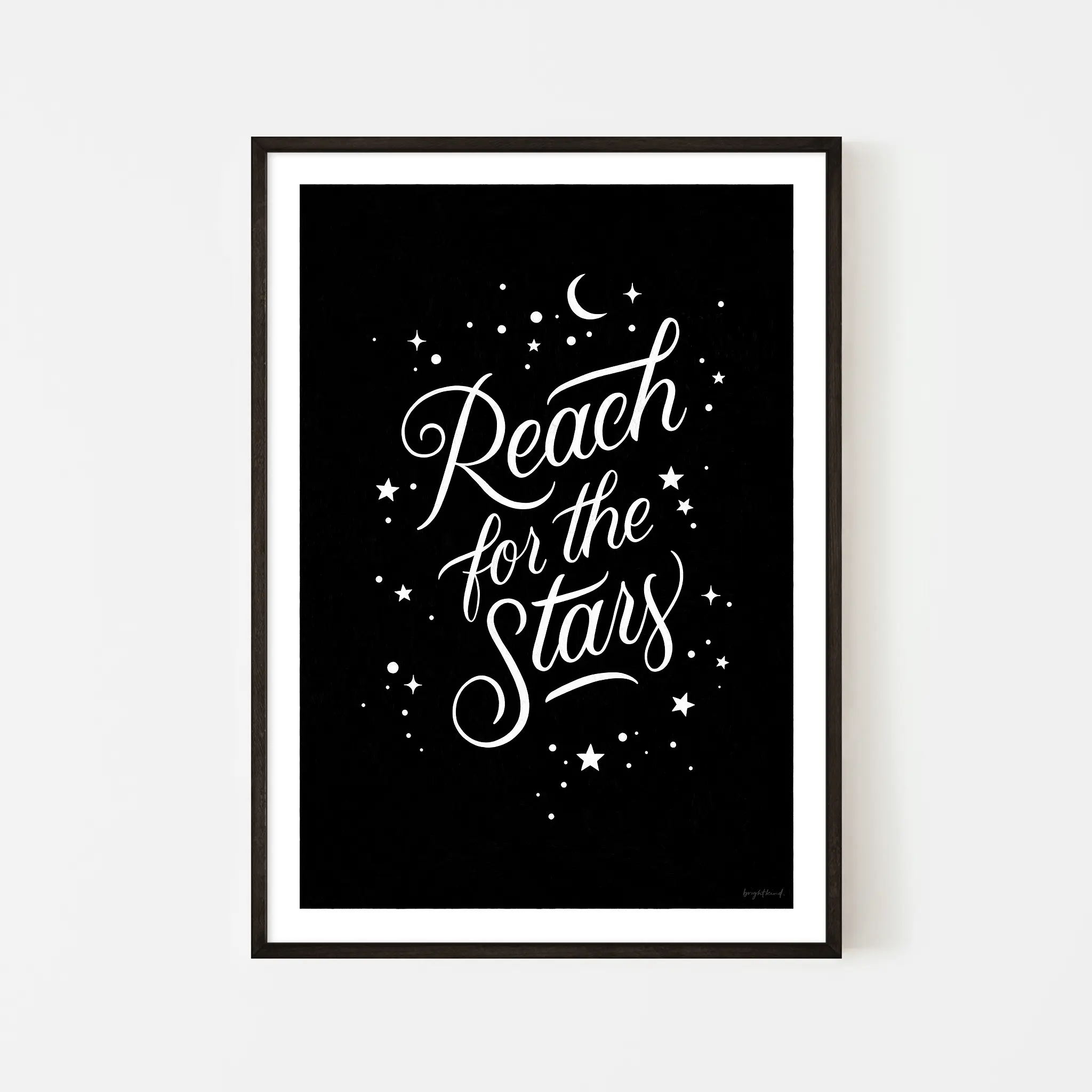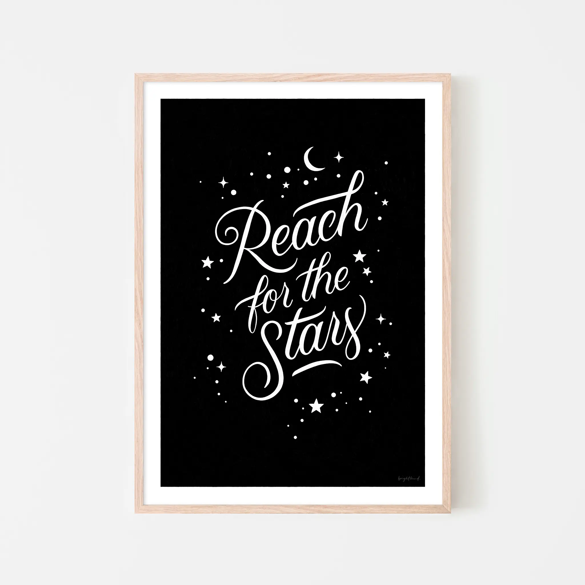To ensure authenticity and copyright protection, a small Brightkind logo is subtly placed in the bottom right corner of each print.