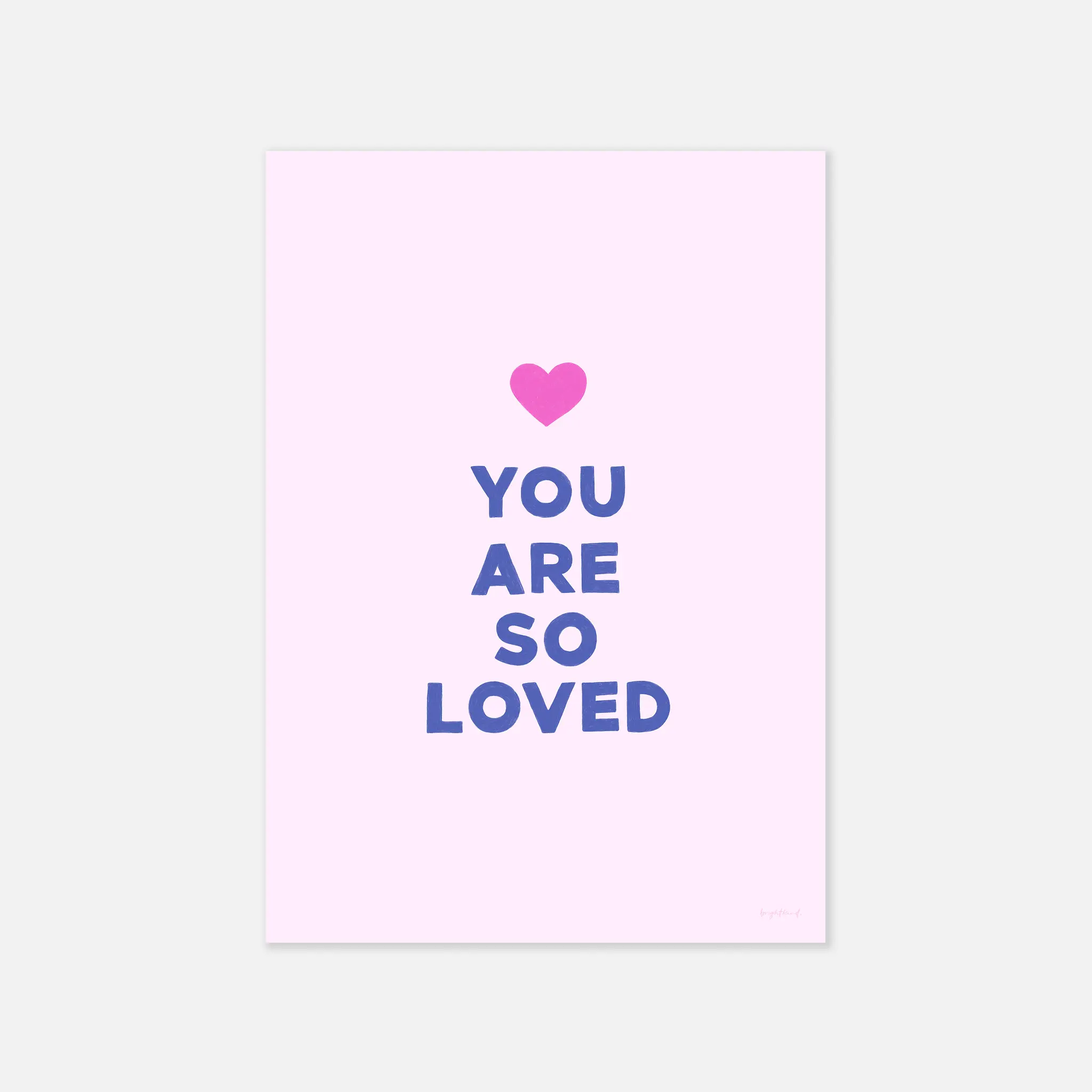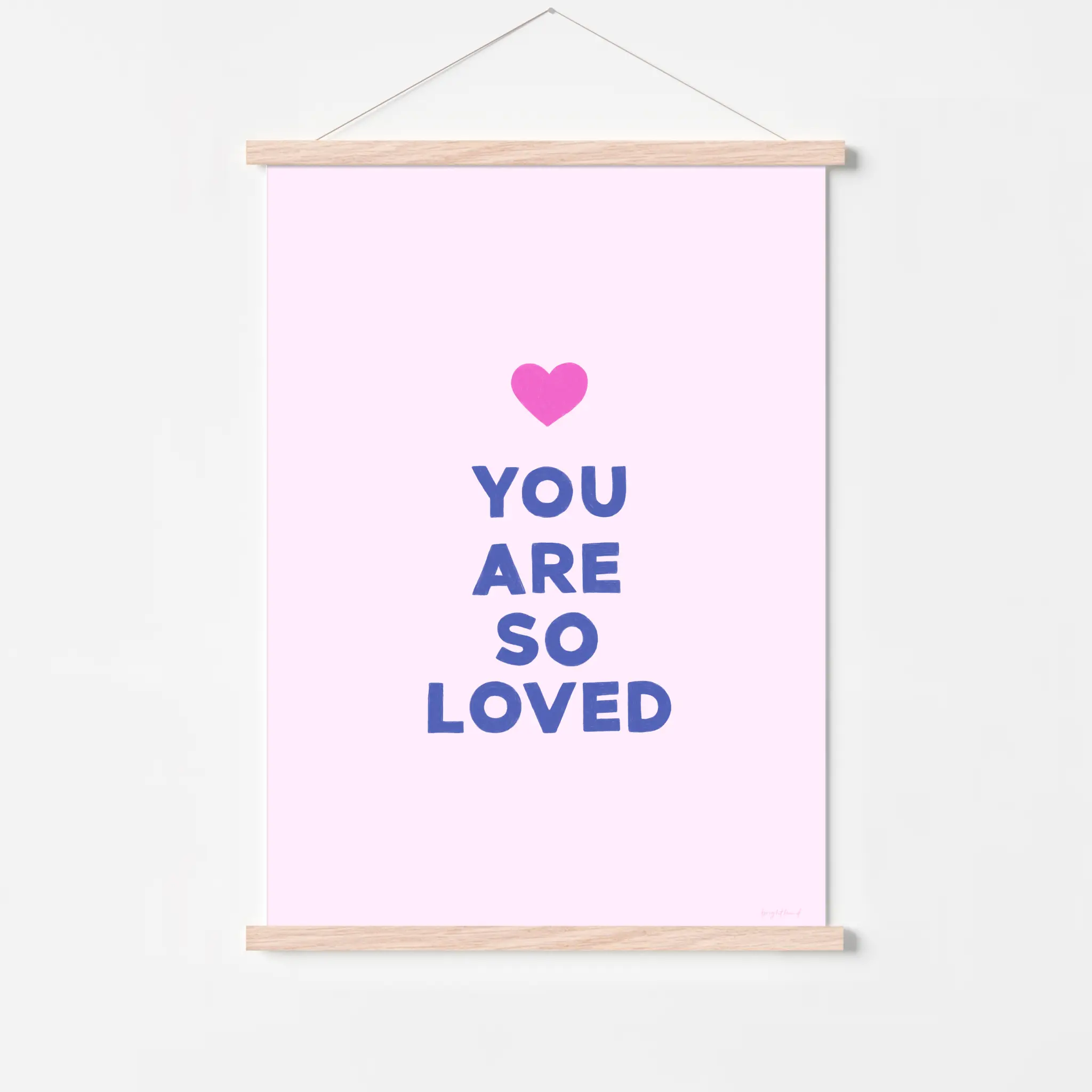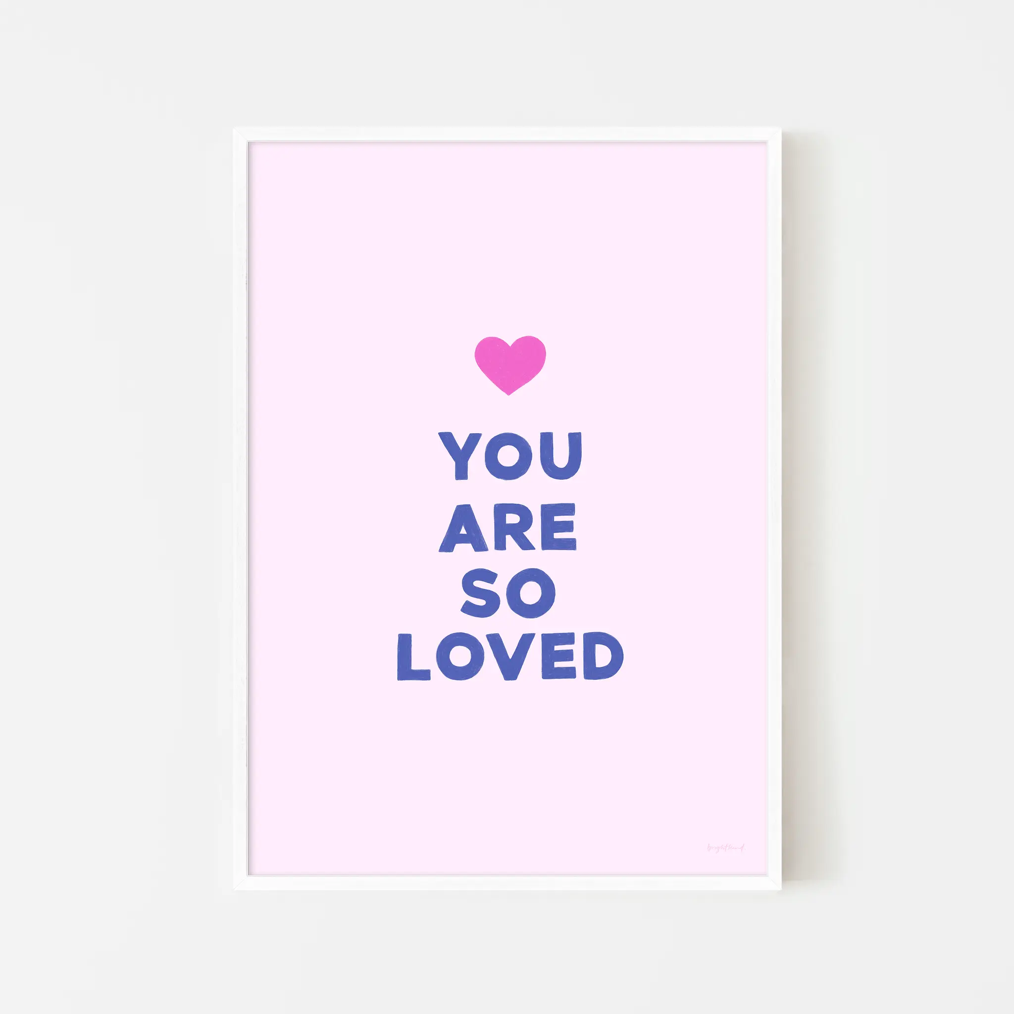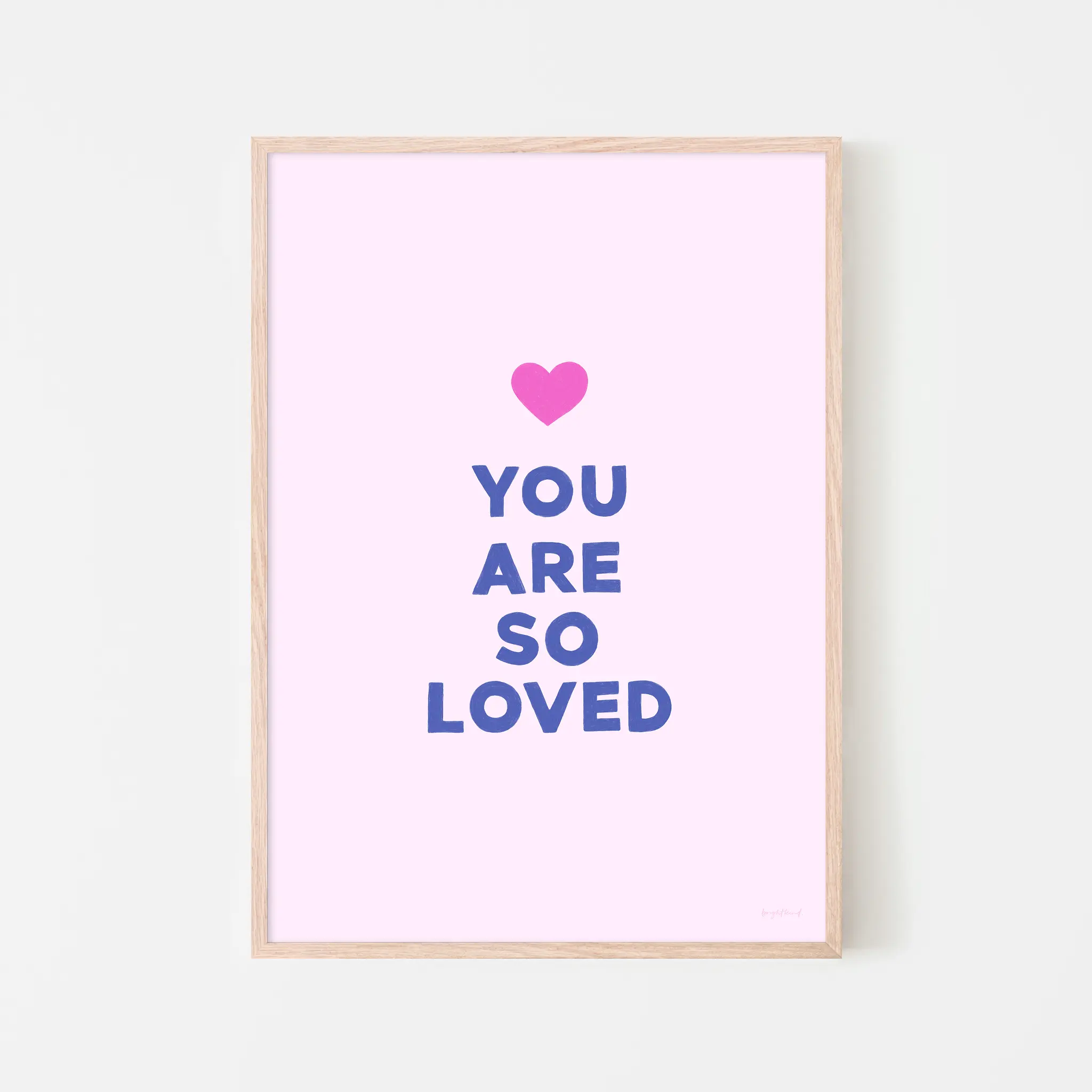 With a soft pink background and playful lettering, You Are So Loved – Bubblegum Kiss is a heartfelt reminder of just how cherished you are. Topped with a bright pop of fuchsia, this print radiates warmth, love, and reassurance—perfect for nurseries, playrooms, or any cosy space in need of a little extra sweetness. A simple yet powerful message of love, perfect for little hearts and big ones alike!