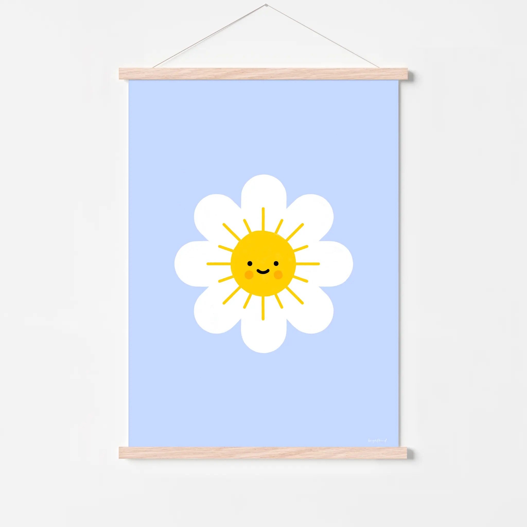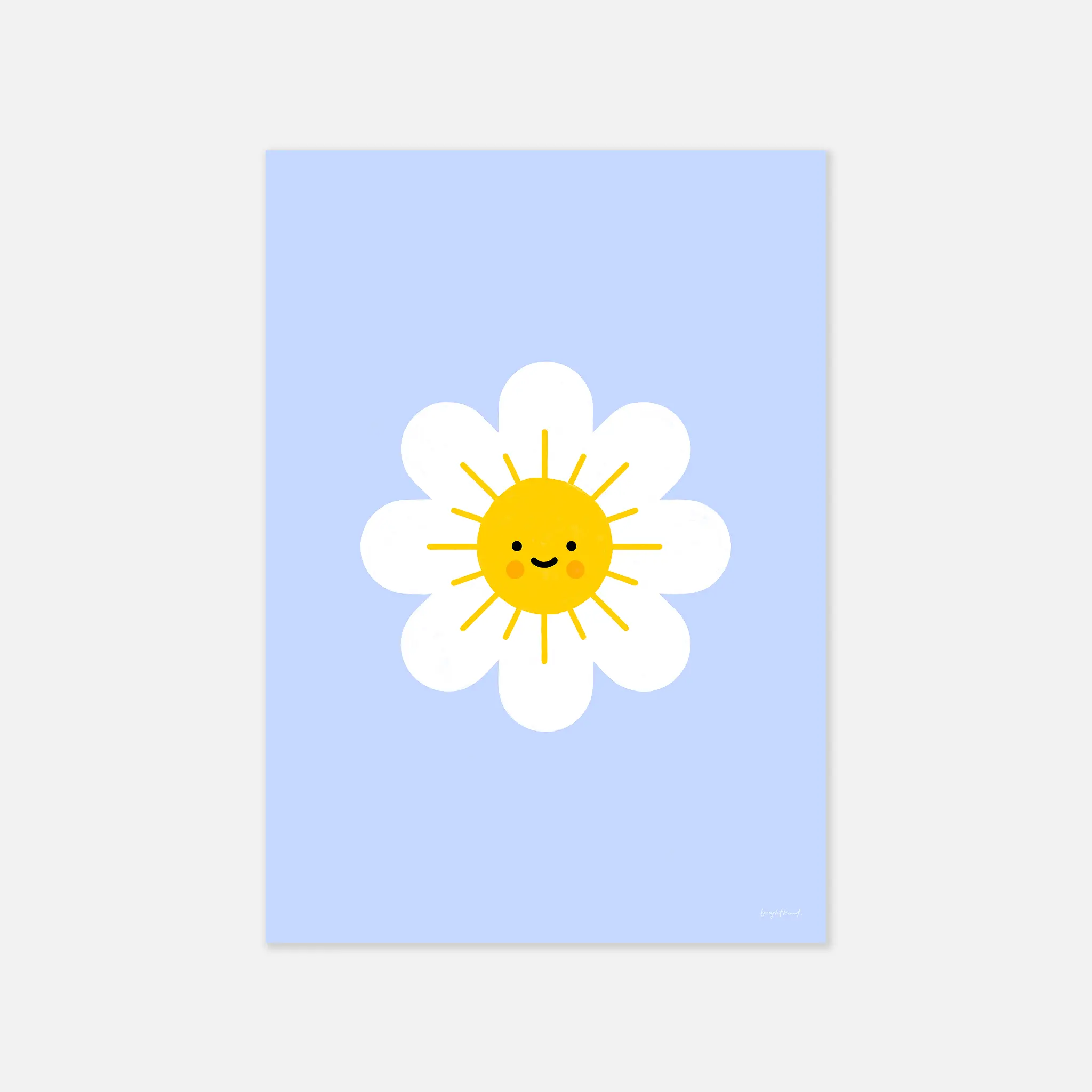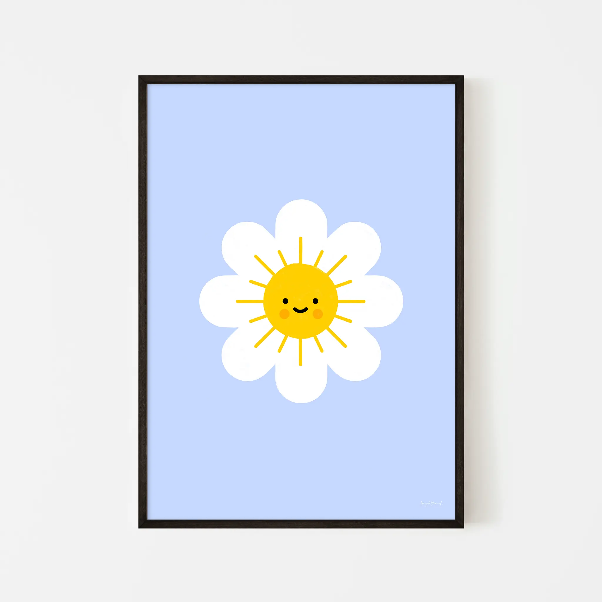 This adorable print blends the golden glow of the sun with the beauty of a flower, all set against a calming blue background. With its happy face and playful petals, this artwork is perfect for brightening nurseries, bedrooms, or any space that could use a touch of warmth and positivity. A simple yet joyful piece that brings a smile every time you see it!